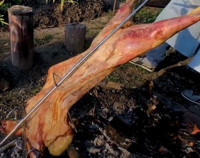 - Paso 4: Luego de que tengamos ya nuestro cordero amarrado a la lanza, lo pondremos cerca del fuego en un ángulo de 45 grados. La idea es que no tenga ningún contacto directo con las llamas del fuego porque se puede quemar.